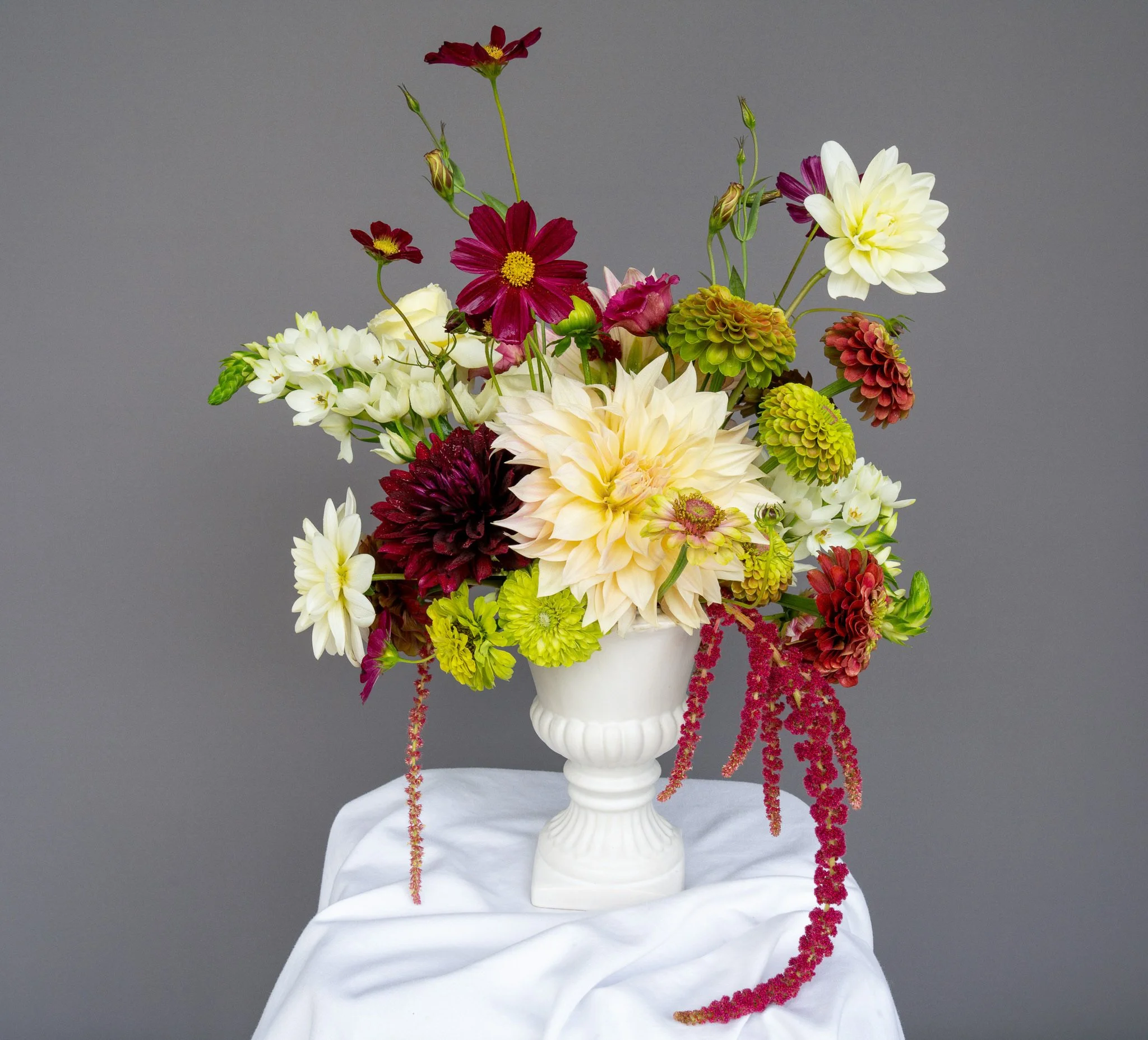 Our $500+ arrangements are bespoke floral installations designed to elevate any space or event. These extra-large creations are lush, architectural, and brimming with the most luxurious blooms—think ranunculus, dahlias, phalaenopsis orchids, anthurium, and unique seasonal finds. They may include sculptural branches, trailing elements, or layered textures and are perfect for grand celebrations, gallery installations, or a dramatic, one-of-a-kind floral moment.